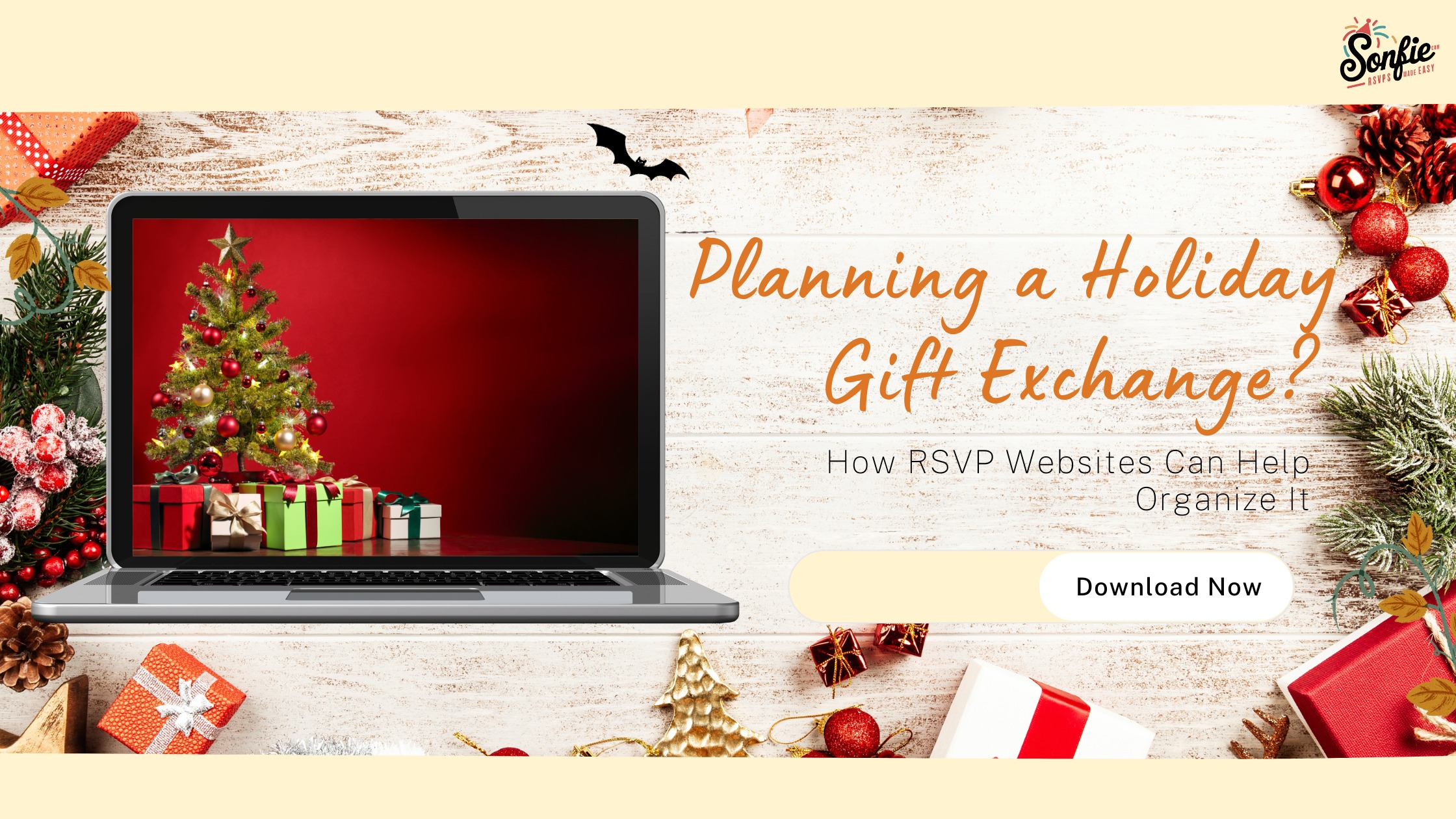 Sonfie’s customizable templates allow you to match your RSVP website with the theme of your gift exchange. Whether it’s a playful White Elephant theme or a traditional Secret Santa exchange, you can choose designs and colors that set the tone. Plus, you can add fun, festive thank you and regrets text, such as: "We can’t wait to see the fun gifts you'll bring! Thanks for participating!" or "Sorry you can't make it this time—hope you get some holiday cheer elsewhere!"