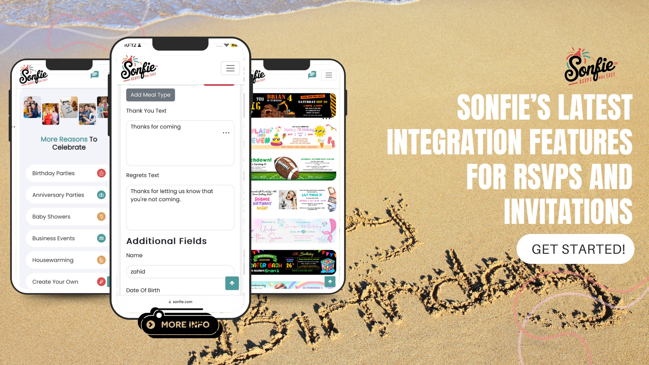 Seamless Email Integrations: Now, you can integrate your Sonfie account with email marketing tools to send personalized invitation emails directly to your guests. This integration allows for automated reminders, thank-you notes, and event updates, making it easy to stay in touch with your guests.